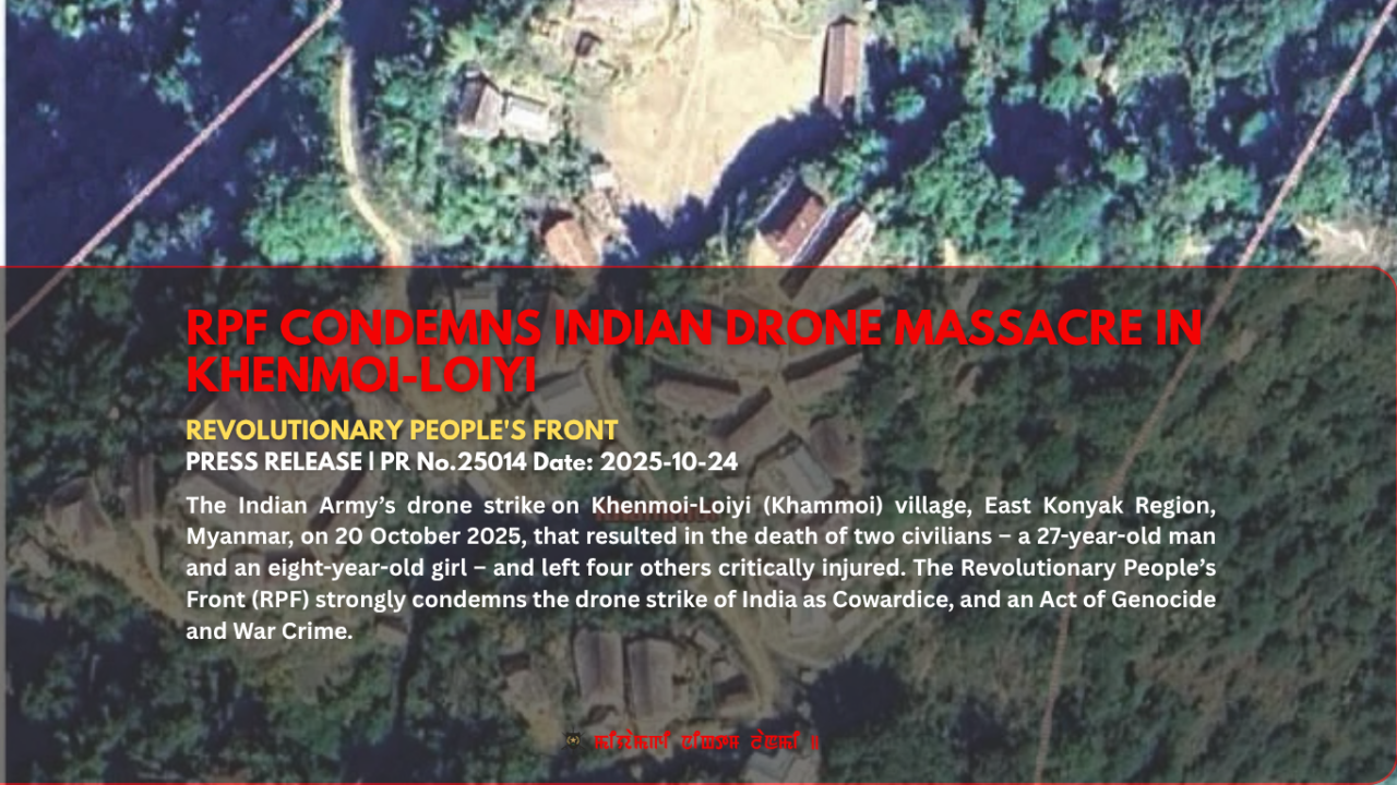 RPF CONDEMNS INDIAN DRONE MASSACRE IN KHENMOI-LOIYI PRESS RELEASE PR No.25014 Date: 2025-10-24 The Indian Army’s drone strike on Khenmoi-Loiyi…