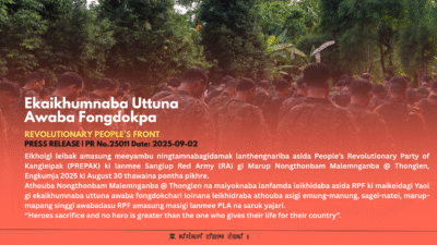 Cha lising kaya epa epu sing na engana chikna maning tmba chek la gum na khunda leita du na nungc chanana Amadi esa lm nksendu na leirkke matm khara leiraba tung dadi Indian na manipur da mityen chang lkkhe maning tmjarmba sana leibk manipur ngasi di India ge fttraba sason semba kharana sana leibk pu IND ge khubm nungda thamkhe khang ngamdraba ema singna mitlu dge pirang sintha badu uba da khangba ngamdraba macha singna tuminna fmduna leiba ngamd badge eyum thadok tuna meyumda seidang duna ening tmna leina ba smsaba hwkhe crabasu ening tmna esage ermda cba pmme ei ama crabsu Ning hnna badi yade marup mym esa ge yumda hnjinba Ngam dre fwdi ferep hongba yade long live RPF PLA yaifare